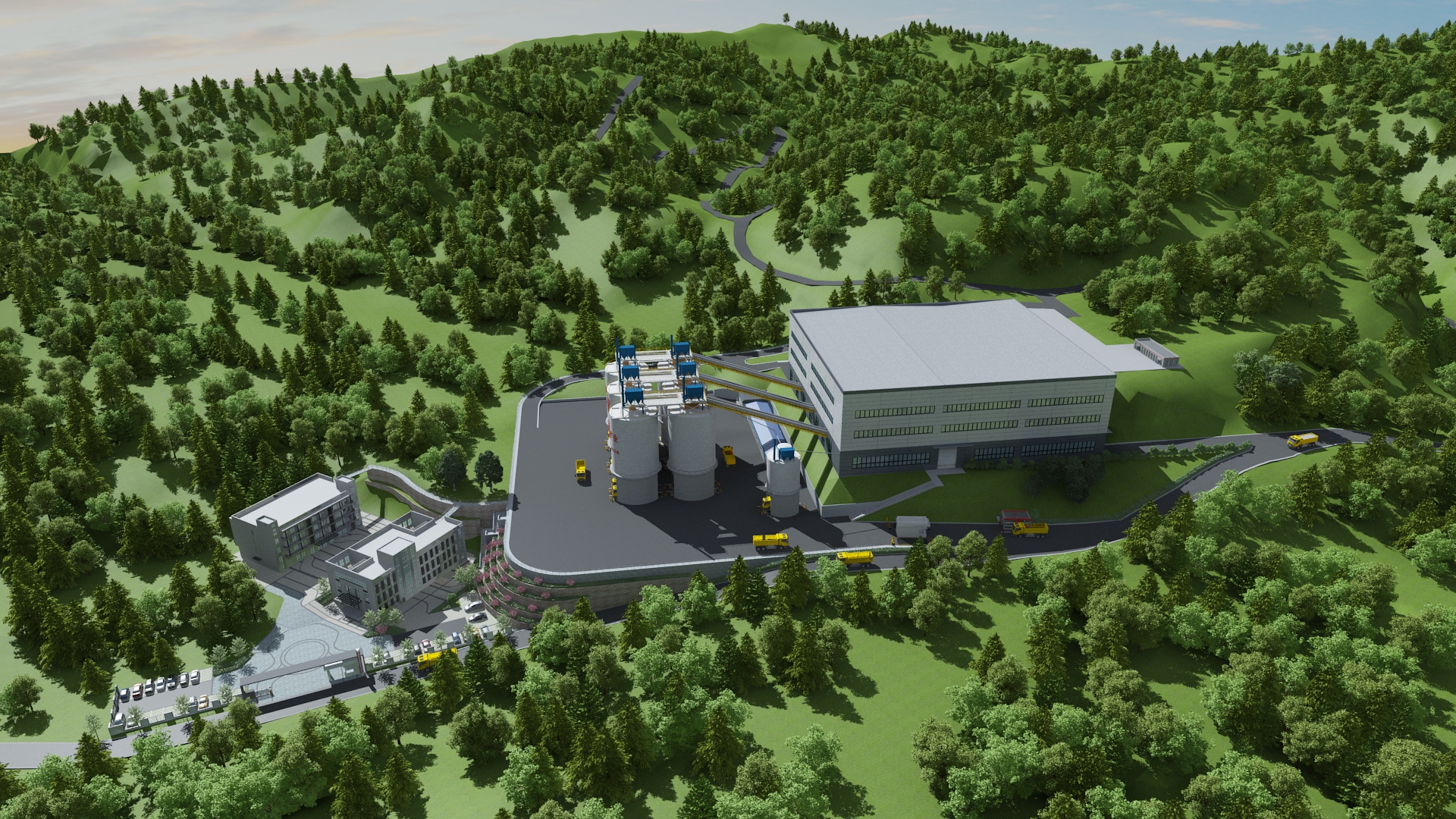 該項目由三銘重工提供節(jié)能高效、綠色環(huán)保、智能安全的整體解決方案。圍繞“創(chuàng)新、協(xié)調(diào)、綠色、開放、共享”的綠色礦山建設(shè)理念,采用分段破碎、多級篩分工藝。
