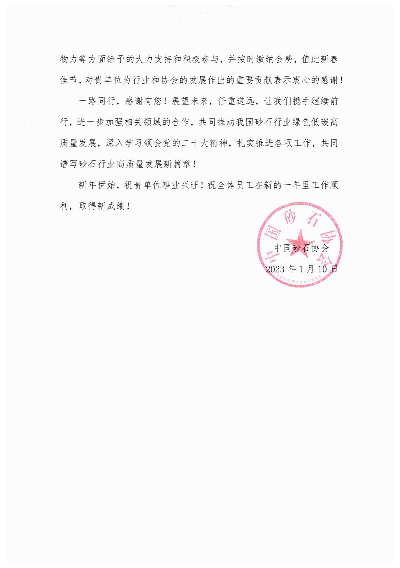 感謝信│攜手同進(jìn),團(tuán)結(jié)互助,合力推動(dòng)砂石行業(yè)高質(zhì)量發(fā)展