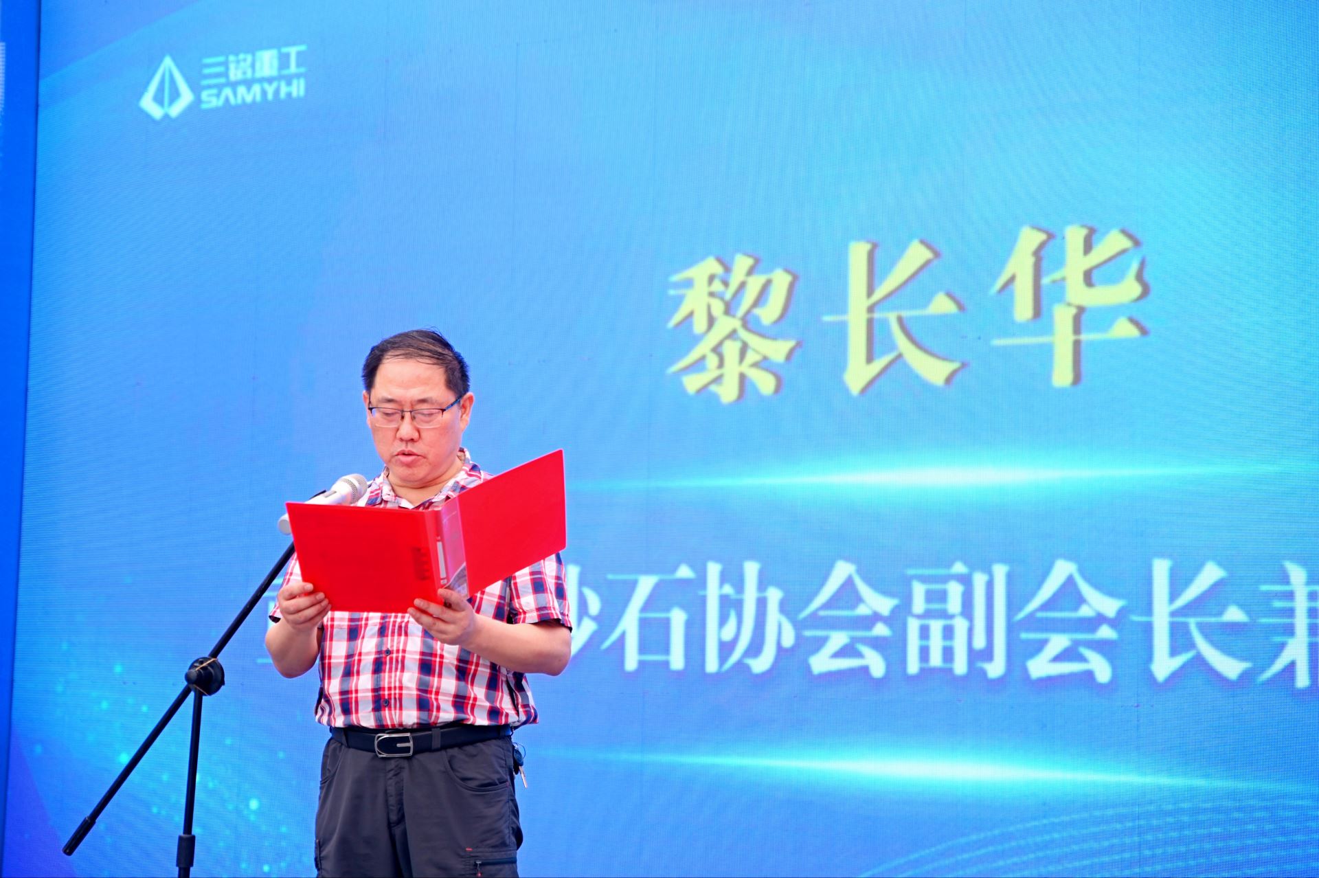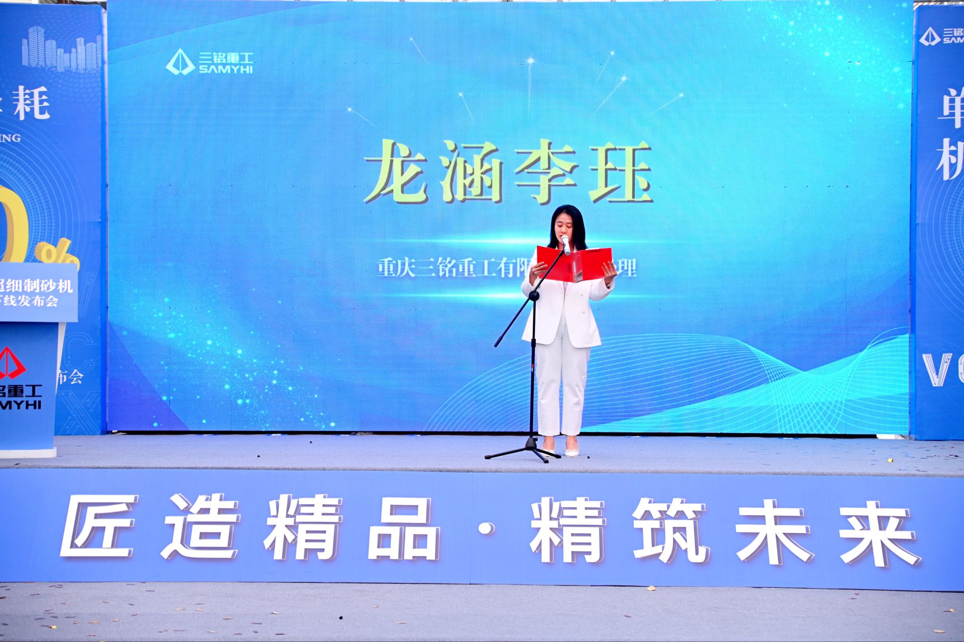 重慶市砂石協(xié)會副會長兼秘書長黎長華在致辭中表示:三銘重工作為重慶市砂石協(xié)會的副會長單位,堅持以“智能、高效、節(jié)能、環(huán)保”為產(chǎn)品研發(fā)定位,在節(jié)能降耗、石粉控制、級配調(diào)整等方面潛心智造。本次VCX超細制砂機新品的下線,就是一次新技術(shù)新裝備的成果展現(xiàn),順應(yīng)了國家節(jié)能減排政策要求,更為砂石企業(yè)減壓賦能,有利于助推重慶乃至全國高品質(zhì)砂石的生產(chǎn)應(yīng)用。