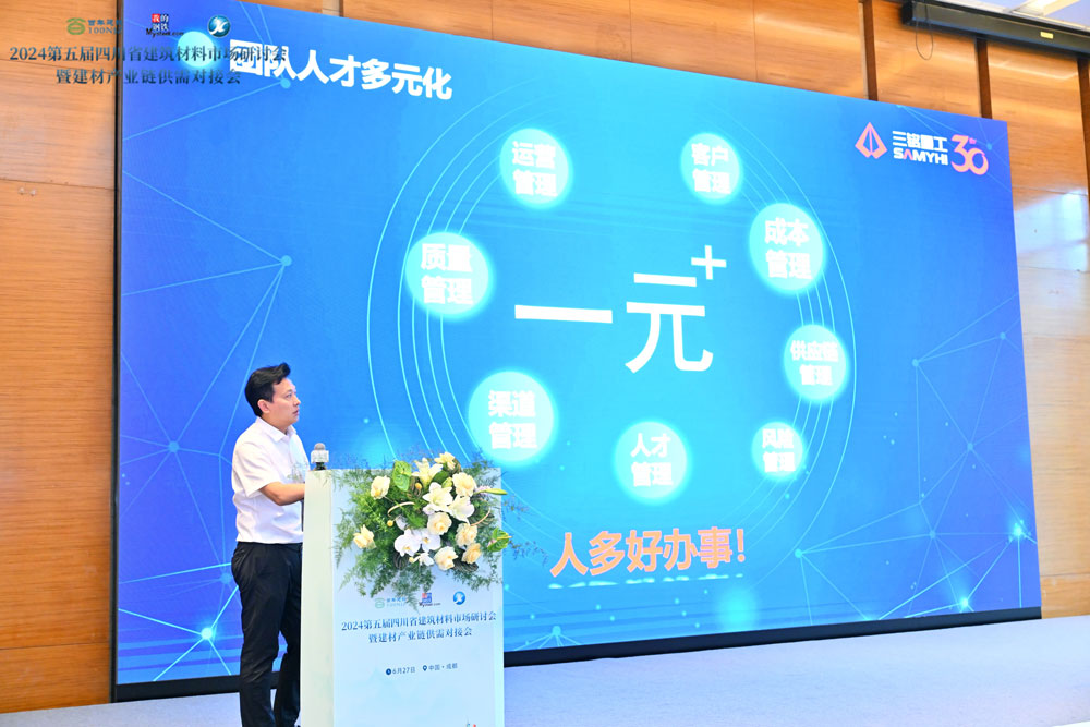 2024年6月27日,四川省成都建材交流會(huì)在成都隆重開(kāi)幕。本次交流會(huì)旨在推動(dòng)建材行業(yè)的技術(shù)交流與合作,整合各類(lèi)優(yōu)質(zhì)資源,助力企業(yè)創(chuàng)造優(yōu)質(zhì)效益,推動(dòng)四川建筑行業(yè)持續(xù)健康發(fā)展。在此次盛會(huì)中,重慶三銘重工有限公司榮幸地受邀參展,重慶三銘重工營(yíng)銷(xiāo)總經(jīng)理張智鋼攜“一元+服務(wù)體系”成為現(xiàn)場(chǎng)焦點(diǎn)。