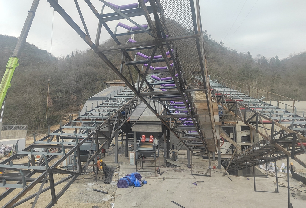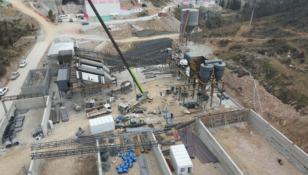 To achieve efficient synergy between resource recycling and engineering construction, the gravel yard project for Hefeng Station in the Hubei section of the newly-built Yichang-Fuling High-Speed Railway is being constructed as scheduled. The complete set of equipment for this gravel yard is provided by Chongqing Sanming Heavy Industry, designed to meet high standards of economic efficiency, environmental protection, energy conservation, high efficiency, intelligence, and safety. The coarse crushing process adopts a semi-submerged design, utilizing natural terrain to reduce footprint and rationally arrange the production line.