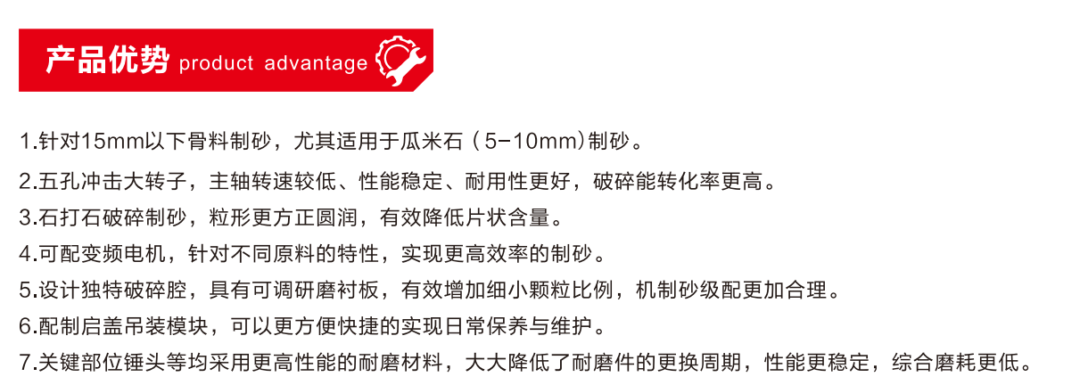 三銘重工UL系列立軸式超細碎制砂機,是我公司結(jié)合國內(nèi)外先進的破碎制砂理念,依托多年國內(nèi)破碎制砂經(jīng)驗,研發(fā)的一款以15mm以下小碎石為原料的超高性能制砂破碎設(shè)備。其繼承了傳統(tǒng)沖擊破穩(wěn)定、磨耗小的優(yōu)點,而且成品砂粒形方正圓潤,級配合理,完全滿足國內(nèi)對高品質(zhì)機制砂的質(zhì)量要求。尤其適用于高品質(zhì)機制砂的生產(chǎn),粒形更方正、片狀更低、級配更合理,可滿足國內(nèi)對高品質(zhì)機制砂的質(zhì)量要求。