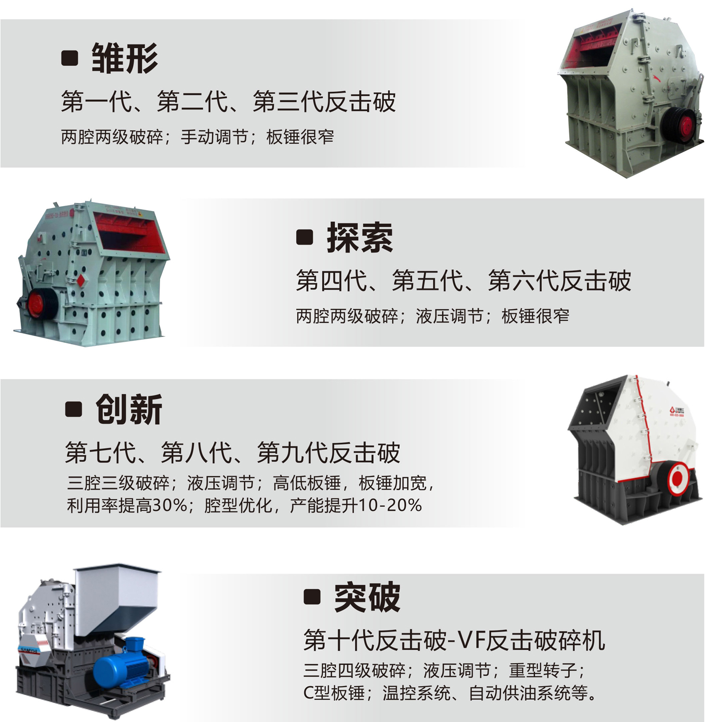 VF反擊破十代蝶變,不僅僅代表著產(chǎn)品的更新?lián)Q代,更是三銘重工企業(yè)精神的完美體現(xiàn)和傳承延續(xù)。